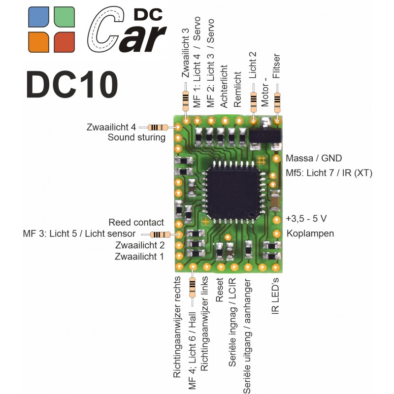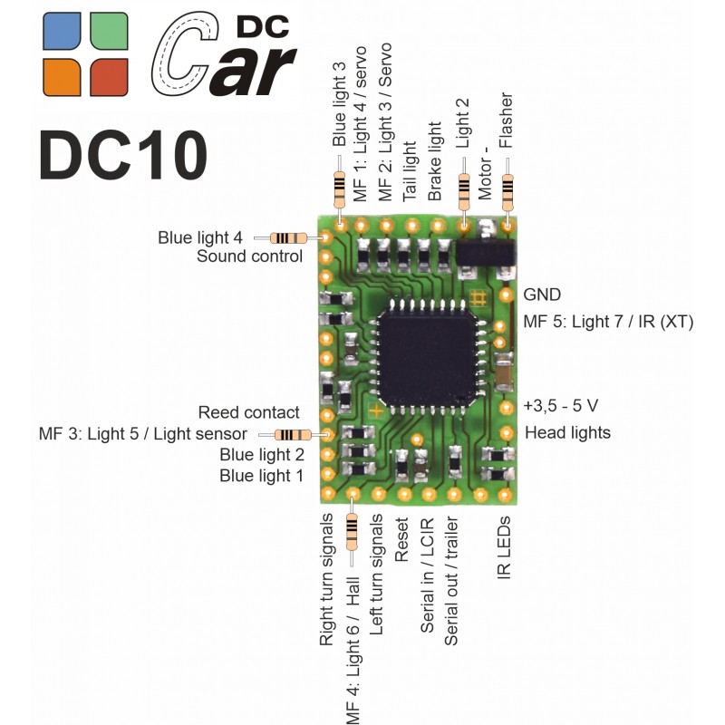 The decoder does not have its own voltage converter and no infrared amplifier on board and is therefore very attractively priced. However, this means that no IR sensors can be connected and thou the anti collision system is not available .