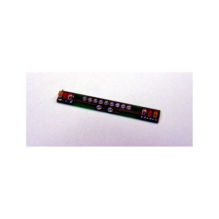 Lighting bar with IR LEDs, ready for use with DC-Car decoders with Anti Collision System. This illumination bar is designed for oldtimer trucks which are narrower than the modern ones. The brake and tail LED is combined.