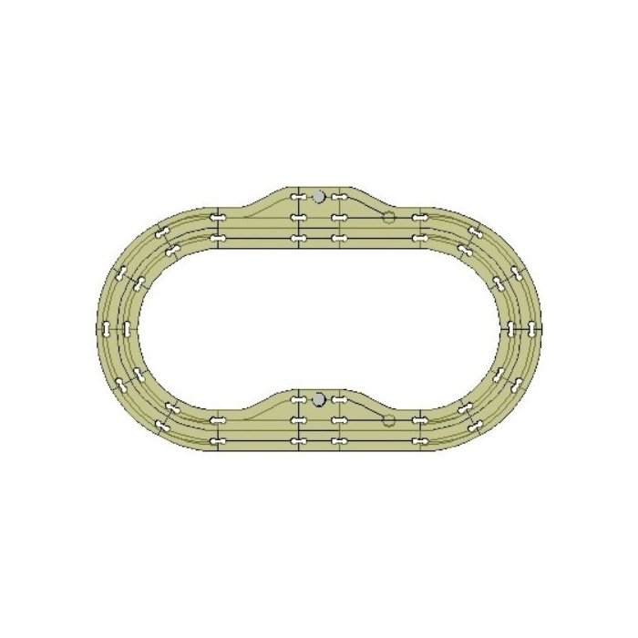 The Streetsystem Startset R2 / R3 in 44mm width for HO contains all segments for building a two-lane oval incl. Two bus stops.