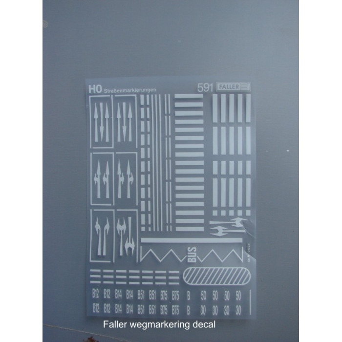 The original Faller road marking decal after German example. Wipe off decal to beautify the roads.