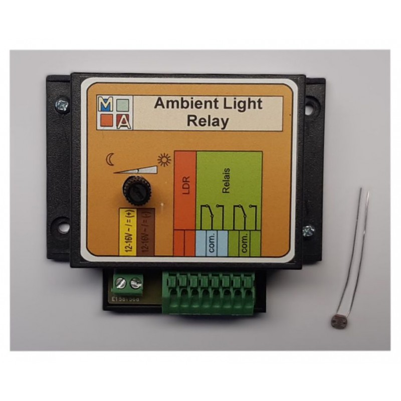 Dit relais reageert d.m.v. een aangesloten lichtgevoelige weerstand (LDR), op het omgevingslicht.