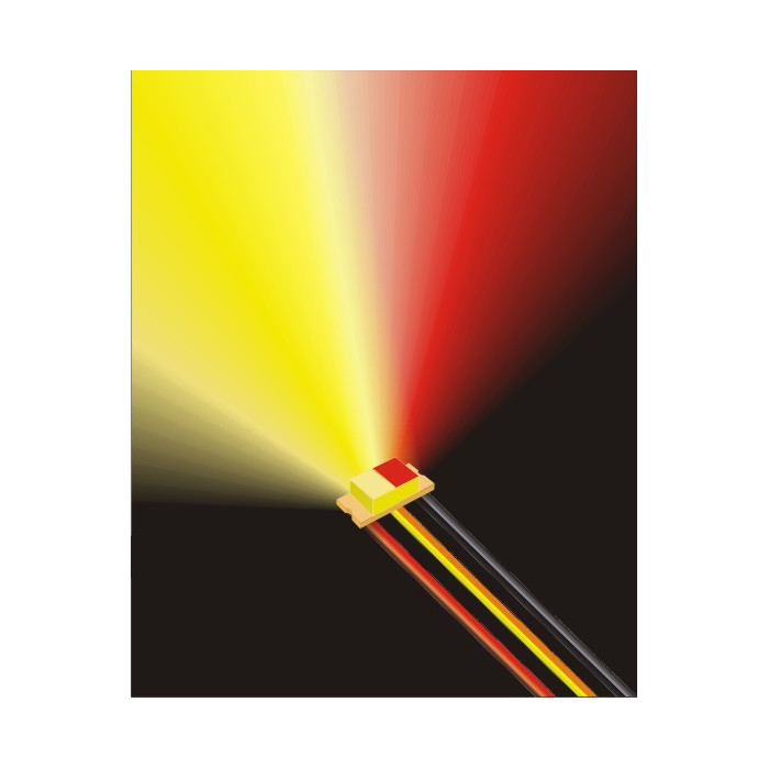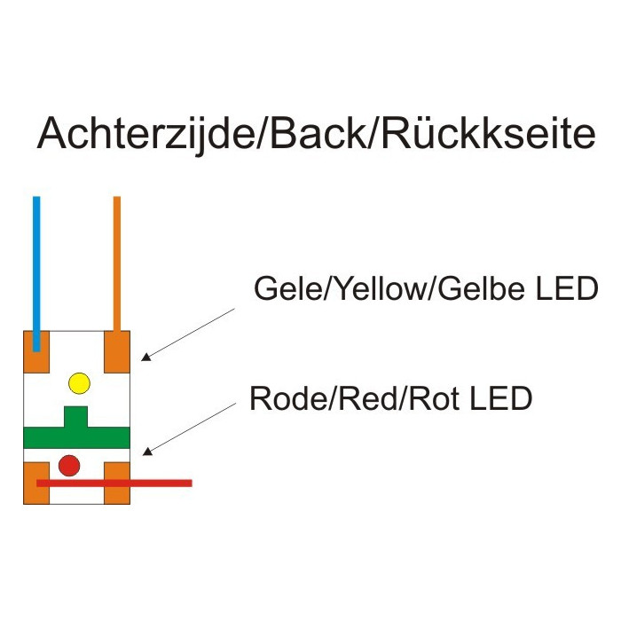 Rood=+, Blauw=min voor de rode LED, Oranje=min voor de rechter gele richtingaanwijzer LED.
