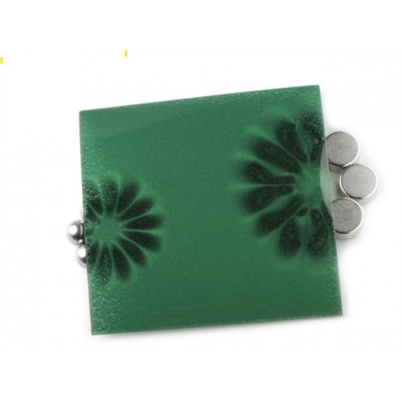 Deze magneetveld detector bestaat uit een folie met daarin nikkeldeeltjes in een gelatineachtig suspensie.